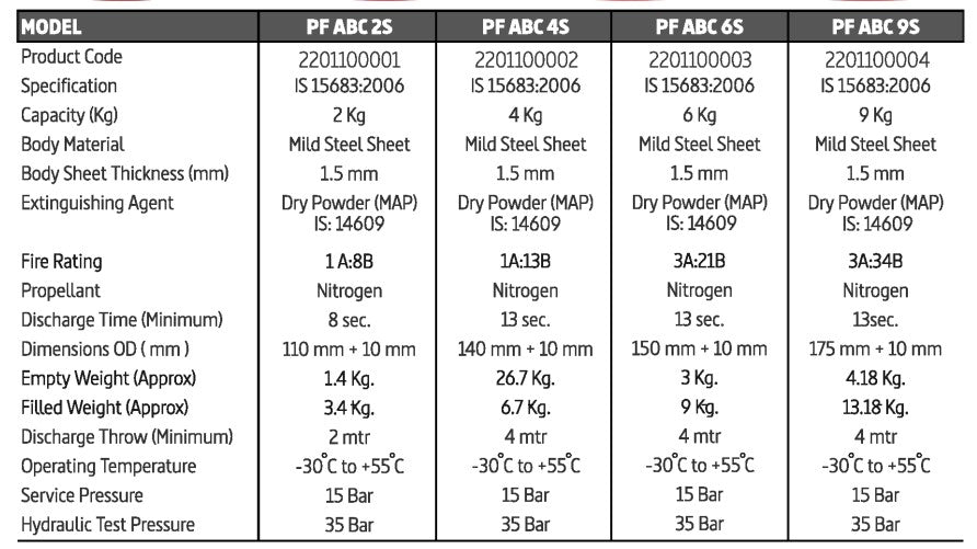 Stored Pressure Fire Extinguishers are available with 50% & 90% Mono Ammonium Phosphate Powder