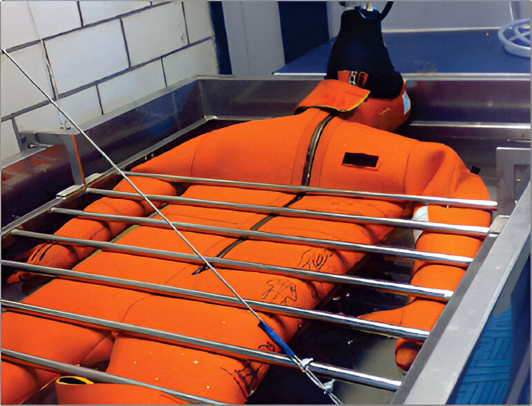 As per IMO Guidelines (MSC/Circ.1114), in order to ensure the maintenance of adequate strength and water tightness of seams and closures of immersion suits with age, it is recommended to subject